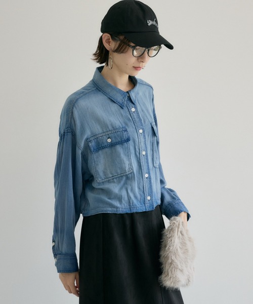 ヴィンテージ感と透け感のいいとこ取り!最旬シアーデニムシャツ <POINT> ヴィンテージとシアーを掛け合わせたデザイン。 着るだけでスタイルアップを叶えるショート丈。 羽織りにもトップスにも、一枚で無限に広がる着こなし。 ご自宅で手洗い可能なイージーケア。 【デザイン・シルエット】 絶妙な色落ち加工が施されたヴィンテージライクな風合い。 ほんのり肌が透けるような繊細なシアー感と、旬なショート丈を掛け合わせた、新感覚のデニムシャツ。 肩や腕が動きやすいようアームホールにはゆとりを持たせ、窮屈感のないストレスフリーな着心地を実現。 フロントボタンを留めて一枚で着れば、視線を上に集めるコンパクトなトップスとして活躍。 ボタンを開けてラフに羽織れば、キャミソールやワンピースに重ねる軽快なアウターに早変わり。 【素材感】 デニム特有の重さや硬さを完全に払拭した、驚くほど薄手でシアーなコットン100%生地を採用。 素肌に触れても心地よい、さらりとした質感。 【カラー】 ネイビー ブルー 2色展開 【スタイリング】 ワイドパンツやフレアスカートと合わせてメリハリのあるスタイルを楽しむ休日のショッピング。 ハイウエストのボトムスやワンピースと合わせれば、スタイルアップコーデが即座に完成。 夏の冷房対策や日焼け防止にも◎ 裏地:なし 光沢:なし 伸縮性:なし 透け感:あり 生地の厚さ:薄手 ポケット:あり 【Dignite collier】 30代のリアルクローズを実感していただくために生まれたブランドです。 SWEET x COOL CASUAL x MANNISH AGELESS SEASONLESSなど常識にとらわれない、私が着て、私らしく、私が好きになれる服。 そんなアイテムを提案します。 ※照明の都合上、多少の色ブレが生じてしまう可能性がございますので、予めご了承くださいますようお願い致します。 --------------------------------------------------- ●お気に入り登録でお得情報を手に入れよう! 「商品のお気に入り登録」をすると、再入荷通知や、ラスト1点の通知、セールの通知など、お得情報が届きます。 また、マイページでいつでも確認が可能になります。 「ブランドのお気に入り登録」をすると、新商品や再入荷、などいち早くブランドの最新情報をお届けします。 ぜひ、ご利用ください。 ----------------------------------------------------