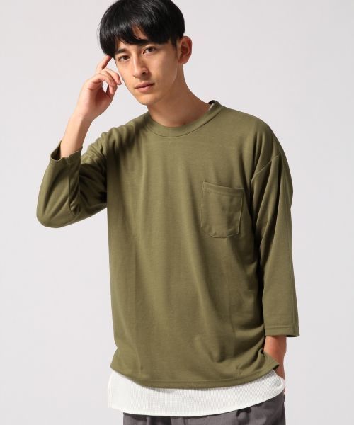 肩幅を大きく持たせた、ドロップショルダーシルエットのカットソー。 レーヨン混の、落ち感のある柔らかな素材感が特徴で、リラックスした雰囲気のスタイリングにピッタリです。 豊富なカラーバリエーションも魅力で、色違いで揃えたくなるアイテム。 1枚ではもちろん、インナー使いとしても大活躍間違いナシの、オススメのカットソーに仕上がっています。