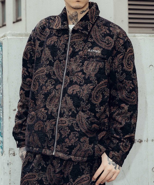 【Subciety(サブサエティ)】 高級感溢れるシェニール織ペイズリージャケット -デザイン- スコットランドの織物であるシェニール織の生地を採用したスポーツジャケット。丁寧に時間をかけて織り込まれた厚手の生地はパイルのようなソフトなタッチと高級感のある光沢が特徴。 ブランドを象徴するペイズリー柄を表現。 裏地はダイヤキルティングの中綿仕様。 袖のカフスボタンはオリジナルのネオバボタンを採用。左胸にはブランドロゴを刺繍で施しました。 短丈のシルエットが魅力。 151-01070 Chenille trousersとセットアップで着用可能。 -生地- ペイズリー柄のシェニール織生地 ▼商品のお気に入り登録 完売カラーの再入荷通知や、ラスト1点の通知、セールの通知も受け取ることができます。 ▼ブランドのお気に入り登録 新商品や再入荷等、いち早くブランドのお得な情報を受け取ることができます。