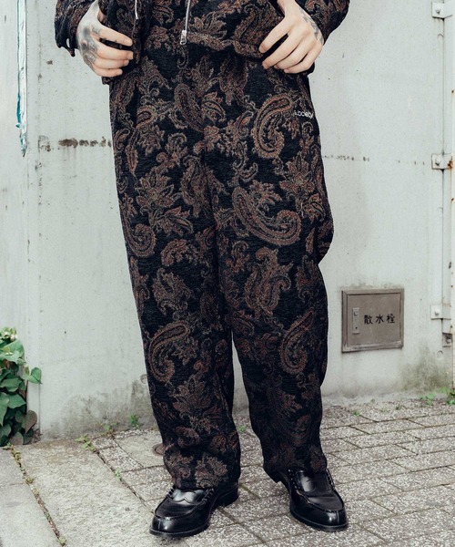 【Subciety(サブサエティ)】ペイズリージャガードのトラウザーパンツ-デザイン-スコットランドの織物であるシェニール織の生地を採用したトラウザーパンツ。丁寧に時間をかけて織り込まれた厚手の生地はパイルのようなソフトなタッチと高級感のある光沢が特徴。ブランドを象徴するペイズリー柄を表現。フロントにはブランドロゴを刺繍で施しました。ワイドテーパードのシルエットが魅力。151-62048 Chenille sports jktとセットアップで着用可能。-生地-光沢感のあるシェニール織生地を採用▼商品のお気に入り登録完売カラーの再入荷通知や、ラスト1点の通知、セールの通知も受け取ることができます。▼ブランドのお気に入り登録新商品や再入荷等、いち早くブランドのお得な情報を受け取ることができます。