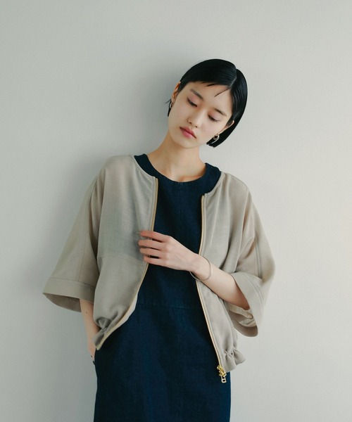 ーーー普通じゃない、デザイン性を求めた夏の羽織りブルゾンシルエットのアレンジで、着方パターンを楽しめる一着ーーー【デザインと特徴】着るだけで映える、細部のデザイン性にこだわった夏のブルゾン。丸みのあるシルエットと半袖のバランスが今っぽい雰囲気に。裾にドロストを入れ、逆開ファスナー仕様にすることでお好みのシルエットにアレンジが可能です。ドルマンスリーブと袖口のワイドさで、ボリュームのあるトップスの上からでも羽織りやすく肌離れの良い涼し気なシルエットにこだわりました。【素材特徴】リネンライクのメッシュ素材を使用。特殊加工により、ナチュラルな表情とハリ・コシを付与しているためよりリアルな麻の風合いに近づけました。風通しが良く、さらっとした肌触りです。【スタイリング】普段のスタイリングに、サラッと羽織りとして◎タンクトップや見せるキャミインナーを仕込んで、トップスとしてもお使いいただけます。【洗濯可否】洗濯機での洗濯が可能です。ーーーーーーーーーーーーーーーーーーーーーーーーーーーーーーーーー《インフォメーション》◆商品のお気に入り登録♡をクリックで気になるアイテムをお気に入り登録していただくと、以下の通知を受け取ることができます。・入荷・再入荷・ラスト一点・セール対象時◆ブランドのお気に入り登録新商品や再入荷、セール、クーポン配布などのお得な情報を受け取ることができますので、是非ご登録ください♪公式Instagram >>> 【@apartbylowrys 】おすすめアイテムや新作情報、" ショップニュース "を更新中!ぜひフォローしてみてくださいね^^