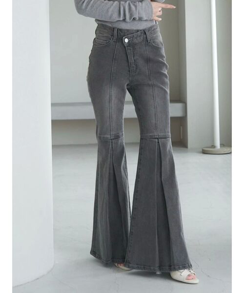 美脚効果抜群のブーツカットパンツです。ストレッチのあるデニム生地がヒップから太ももまで着心地良くフィットします。膝上の切り替えのタックから裾にかけて広がるシルエットがポイントです。アシンメトリーデザインのベルトはVカットになっているので、ウエストが細く見えます。太ももに施したウォッシュ加工は立体感を作りスタイルアップ◎フェミニンなシアーブラウスはもちろん、クロップド丈のTシャツに合わせたカジュアルコーデもオススメです。スタッフレビュー【156cm・Sサイズ着用】フレアシルエットのデニムパンツ伸縮性のある生地で見た目によらず履き心地抜群フレアの切り替え位置が高く、骨格ストレート優勝な美シルエットです【169cm・Sサイズ着用】大きめフレアがシルエット優勝なデニムパンツフレアの切り替え位置が高くて膝下の脚長効果バツグンハイウエストが重心を上げてくれるので骨格ウェーブさんでも使いやすいです!----------------------------------------------♡商品のお気に入り登録完売カラーの再入荷通知や、ラスト1点、セールの通知をお知らせ致します。♡ブランドお気に入り登録新商品や再入荷など、いち早くブランドの情報を受け取ることができます。----------------------------------------------※サイズは、実寸サイズを測っているため多少誤差がでる場合があります。※重量は目安として、参考にして下さい。※商品画像は着用イメージです。 光や角度により、実物と色味が異なる場合がございます。 商品の撮影はサンプルで行っている為、カラーやサイズ等に変更がある場合がございます。 ご覧のモニター環境により実際の商品と多少色味が異なって見える場合がございます。