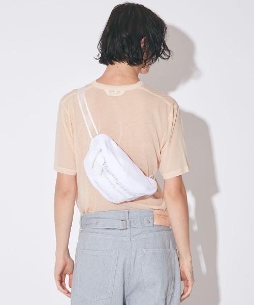 【デザインの特徴】 ・透ける素材でつくられたボディーバッグ ・透け感と光沢を持つオリジナルテープ使い ・本体内側部分メッシュにロゴプリント加工 ・レントゲンで透過したようにバッグの芯材や縫い代が見える ・財布やスマートフォンが収納可能 【素材の特徴】 ・ナイロン製の異なる2種類のメッシュ