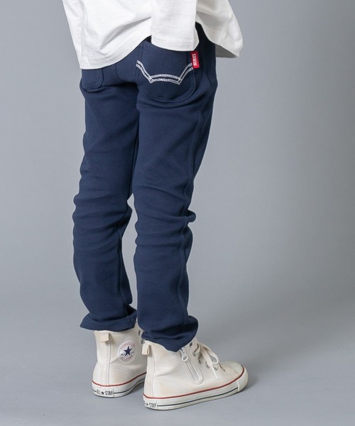 カラーバリエーション豊富なシンプルなエドウィンパンツ!ストレッチがきいていて元気なキッズも動きやすい◎ボトムスのカラーを主役にしたコーデを楽しめます!エドウィンならではの後ろポケットのステッチもおしゃれポイント。