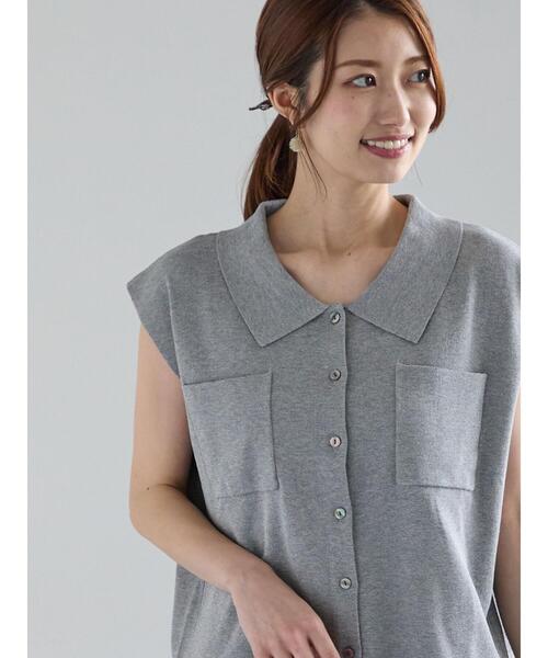ポロ衿と両胸についたポケットが、大人っぽいワークテイストを演出するノースリーブプルオーバー。ドライタッチのレーヨン混素材をすっきりとした総針編で編んだデザイン。ほどよくゆとりのあるシルエットなので暑い夏でも肌離れよく着用していただけます。※商品画像は、撮影環境やお客様のご利用のPC・スマートフォンのモニター環境などにより実物と色味に差異がある場合がございます。