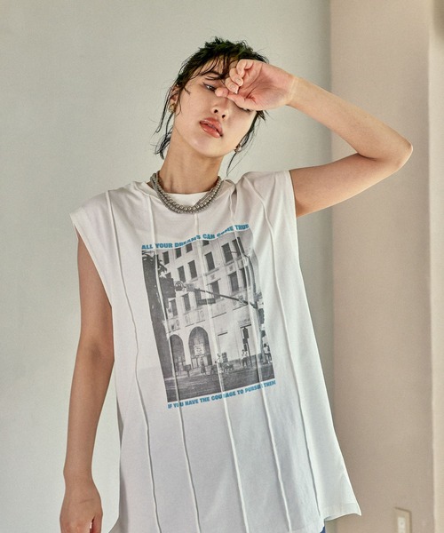 風景フォト×カラーロゴがプリントされたBIGTシャツ 【デザイン】 袖はフレンチスリーブなので涼しく着れるのと、気になる部分もカバーできる丈感のTシャツです。フロント部分はタック仕様になっているものデザインポイントになっています!生地の風合いも柔らかくとても着やすいおすすめの1枚です! 【スタイリング】 ・すっきりシルエットのナロースカートなどと合わせるのがおすすめです。 --------------------------------------------------- 【気になる商品はお気に入り登録がおすすめ!】 ・在庫残りわずか ・再入荷 ・セールの情報 などの通知を受け取ることができます。 気になる商品は♡をクリックして、 「お気に入り登録」しましょう! 【ショップ・ブランドのお気に入り登録も!】 新商品や再入荷、セール、クーポンの配布など、 いち早くお得な情報を受け取ることができます。 ---------------------------------------------------