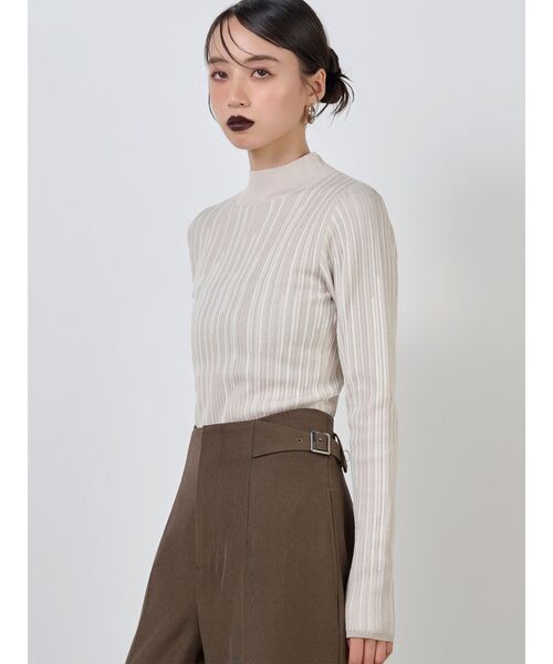 配色にこだわったデザインリブニット縦ラインでスタイルUP効果も!■アイテム立体感のあるリブが他にないデザインのリブニット。1枚で着てもインナーとして着ても存在感がある万能アイテムです。配色にもこだわり、エッジがありながらも着やすいのでおすすめです。スタイルアップして見える、縦の総柄とシルエットなのも嬉しいポイントです。高見えするしっかりした生地感です。--------------------------------------------透け感:なし 生地の厚さ:普通伸縮性:あり サイズ感:細身--------------------------------------------【知って得する便利機能◎ 】■商品のお気に入り登録再入荷時、ラスト1点の時にお知らせします。■ブランドのお気に入り登録新商品やお得な情報など、いち早くお得な情報をゲット!ぜひご活用ください。※着用画像はフラッシュの加減で実際の製品と色味等が異なる場合がございますので、生地のズームアップ画像をご確認ください。※ご利用の端末画面の設定により実際の商品と色味が異なる場合がございます。