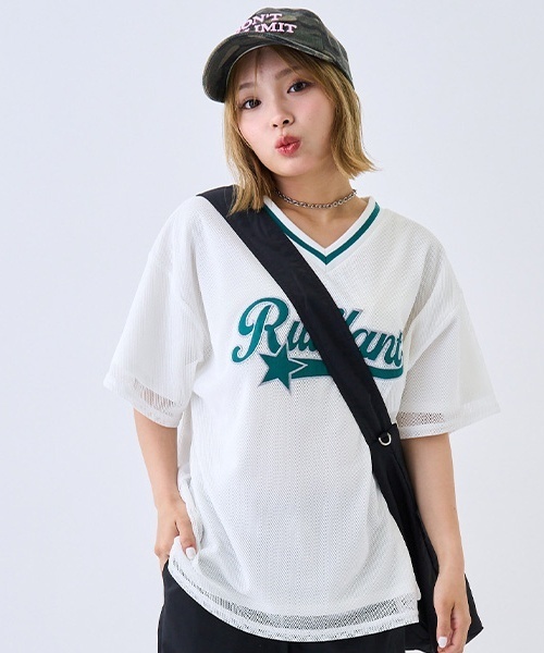 星を取り入れたロゴアップリケがキャッチーなTシャツです。 ゆったりとしたシルエットなので、体型カバーに役立ちます。 涼し気のあるメッシュ素材で、サラッとした着心地を実現。 内側に生地がレイヤードされているため、コーデに困りません! 【透け感】透けない 【生地の厚さ】普通 【伸縮性】あり 【裏地】あり 【ポケット】なし