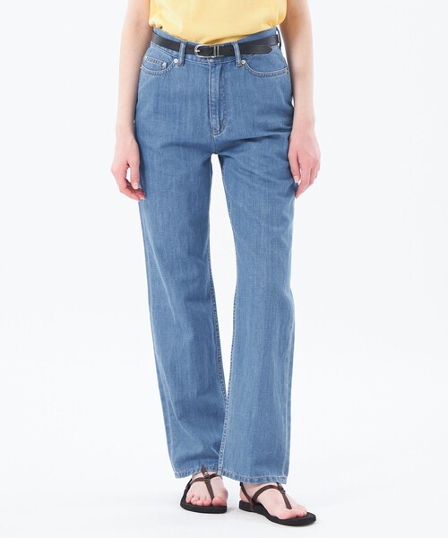 <ニュートラルなシルエットのこだわりのストレートフィット>定番人気のリネンミックスデニムにNEWシルエットが登場。レッグラインを拾いづらい、セミワイドな筒幅ながらも、身体に沿う絶妙なフィット感。デニムのカジュアルさがありながら、シルエットのミニマルさがクリーンな印象を与えます。ワイドボトムスが主流になった今、コーディネートの幅を広げる、こだわりの一着です。【素材】シルケット加工により生地表面が平らになり光沢が得られ、ソフトな手触りと高級感があります。綿麻素材のため着心地が柔らかく、染色しやすいことから発色も良いのが特徴です。おすすめ着用期間:春/夏/秋/冬※34サイズはオンラインストア、ルミネ新宿店、柏高島屋ステーションモール店、ジェイアール名古屋タカシマヤ店、山形屋店、博多阪急、阪神梅田本店のみでのお取扱いになります。※この商品はサンプルでの撮影を行っています。実際の商品とイメージ、仕様が異なる場合がございます。