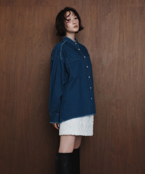 フリンジディティールを効かせたデニムシャツ■デザインフリンジディテールにこだわったデニムシャツは、クリーンな印象のスタンドカラーやトラッド過ぎないディテールがポイント。オーバーサイズのシルエットでラフに着ていただける一枚。■素材フレンチなムードを感じる中濃色に色を落としたデニム素材。6ozのしっかりとした素材感で、くたっとしないのもポイント。■コーディネートトレンド感のあるデニムオンデニムスタイルから、スカート合わせでフェミニンにも。細身のパンツと合わせたモードな着こなしも◎です。#秋服,#秋物,#冬服,#冬物,#25FW,#25AW,#デニム,#シャツ,#シャツ羽織り,#ジーンズ============================裏地:なし透け感:なし伸縮:なし光沢感:なしケア方法:洗濯機洗い可============================< EMMEL REFINES(エメル リファインズ) >Pleasure ~今を楽しみ、変化を楽しむ~EMMEL REFINESは変化していく時代やトレンドを恐れなく前向きに楽しみ、今に満足せず常に自分を更新していきたい、自分らしさを表現したい女性に向けたブランドです。女性の共感を大切に、時代にフィットした新しいスタイルを提案します。【注意事項】※こちらの製品はインディゴ染料を使用しております。着用により、他の衣類や淡色のベルト、バッグ、靴、ソファやシート等に色が付着することがありますのでご注意ください。洗濯の際は、色落ちしますので、単品洗いをしてください。また洗濯により徐々に色あせします。※画像の商品はサンプルです。※商品に「取り扱い上の注意書き」、「洗濯表示」がございます場合は、使用前に必ずご確認ください。※商品画像は、光の当たり具合やパソコンなどの閲覧環境により、実際の色味と異なって見える場合がございます。あらかじめご了承ください。※商品の色味の目安は、商品単体の画像をご参照ください。お問い合わせの際は、ユナイテッドアローズ カスタマーサービスデスクまで下記の品名/品番をお申し付けください。品名:EM フリンジ DNM SHT 品番:66116991022