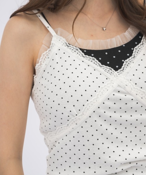 トレンドのポルカドットが目を惹くキャミソール● Design・今季注目のポルカドットがスタイリングの主役に・女性らしいラインを引き立てるタイトなシルエット・伸縮性のある柔らか素材・胸元のリボン&配色レースが甘さをひとさじ加えるアクセントに● Stylingシーズンレスで着回せる、頼れる主役キャミソール。フィット感がありながらもストレスフリーな着心地で、シアートップスやTシャツをインして、ビスチェ風にレイヤードするのもおすすめ。シャツやカーディガンを羽織れば、抜群の存在感で大人ガーリーな印象にもなります。スウェットパンツやカーゴパンツを合わせて、韓国ストリート風の甘辛MIXスタイルも◎▽商品のお気に入り登録完売カラーの再入荷通知やラスト1点の通知プライスダウンの通知も受け取ることができます。▽ブランドのお気に入り登録新商品や再入荷など、ブランドの情報をいち早くお知らせします!ぜひご登録ください◎※ご注意※・屋外の光や照明の当たり具合で、実際の商品の色味とカラー別画像の色味に若干の違いが発生する場合がございます。・詳細画像と併せてご確認の上、ご注文いただきますようお願い致します。・この商品は複数の素材や色を使用しているため、摩擦や水分を含んだ状態でご使用いただくと色移りする場合がございます。淡色の衣類との併用時や雨の日のご使用は特にご注意ください。お取り扱いには十分ご配慮ください。---------------------------------------------------------------idem / イデム「日々の恋人」うららかな朝。窓辺から溢れるコットンのような光。私に纏い、寄り添うあの子はどうしよう。あなたの生活の隣、そっと包んで、愛してInstagram:@idem_ _officialLINE:@586wiabxLINEではお得な情報を随時配信しております。ぜひ友だち追加をお願いいたします。