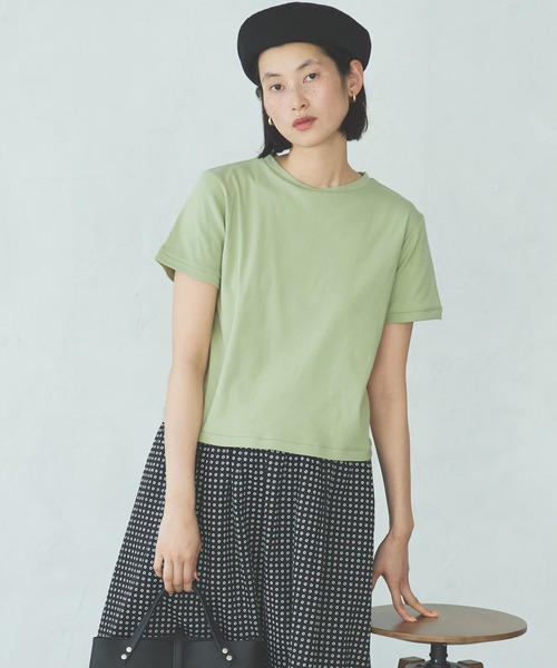 コンパクトシルエットのきれいめフライスTシャツ コンパクトなシルエットと少し短めの丈感が魅力の、大人のためのきれいめフライスTシャツです。 さりげなくフレアになったシルエットと、襟元の切り替えデザインがシンプルながらもこだわりのポイント。 1枚でもスタイルよく決まり、ワンピースやサロペットとのレイヤードにも最適なバランスです。 カジュアルすぎず、上品な印象で着られる大人のデイリーTシャツとしておすすめの1枚です。 この製品にはオーガニックコットンを使用しています。 繊維を極力天然のまま生かしている為、太糸や異糸が部分的に混入している場合がありますが素材の特性としてご理解ください。 コーディネート 【デニム】 コンパクトなサイズ感なので、ボーイフレンドデニムやストレートデニムもバランスよく。 ローファーやフラットシューズで、大人っぽく仕上げるのもおすすめです。 【ハイウエストパンツ】 コンパクトな丈感を活かして、ハイウエストパンツと合わせれば脚長効果も抜群。 足元を華奢なサンダルでまとめて、きれいめな夏スタイルにまとまります。 ※照明の関係により、屋外で撮影した写真の商品は、実際よりも色味が違って見える場合があります。ま たパソコン・スマートフォンなどの環境により、若干製品と画像のカラーが異なる場合もございます。予めご了承ください。 実際の商品の色味は、スタジオ撮影の画像をご参照下さい。 ※商品画像はサンプルのため、色味やサイズ等の仕様に変更がある場合がございますので、予めご了承ください。 アイテム詳細 素材:綿100% サイズ: 【F】 着丈:54,身巾:46,肩巾:39,天巾:21,袖巾:17.2,袖丈:17.5,裄丈:37,袖口巾:15.8,裾巾:50.8 ==================== 裏地:なし 透け感:ホワイトは少しあり 生地の伸び:あり 光沢感:なし ケア方法:手洗い可 ==================== 生産国:日本 品番:12526005 ※取り扱い・ケア方法については、商品についている品質表示でご確認ください。