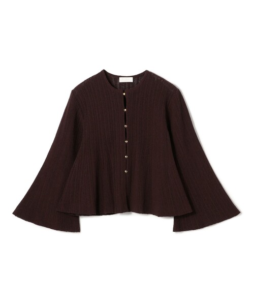 ナイロン100%のブークレストレッチ糸と透明糸を使用して編み上げたボーダーミラノリブニット。 編地を横使いにし引き返し編みを入れることで、パターンを切り替えることなく美しいフレアシルエットを表現しています。 カーディガンは袖口や裾のフレアラインとコンパクトな着丈のバランスがでフェミニンな印象の一枚。 フロントはボタンループ留めの華奢なデザインで仕上げています。 分量感がありつつも短めの着丈バランスでハイウエストパンツやタイトスカートなどとも相性が抜群。 着こなし次第できれいめからカジュアルまで幅広い場面にお召しいただけるアイテムです。 ※商品の色味は、商品単体または素材アップ画像をご確認ください 2025AW商品 店舗にお問い合わせの際は、下記の商品番号をお申し付けください。 商品番号:11-02-54-02008 ※※お取扱い上の注意※※ ・ご自宅でのお洗濯の際は、洗濯方法を十分ご確認の上、やさしい手洗いをお願いいたします。 ・この素材にはモノフィラメント糸が使用されています。 糸の構造上、着用時にやや刺激を感じる場合がありますのでお肌のデリケートな方は着用をお避けください。 刺激を感じたときは、着用をおやめください。