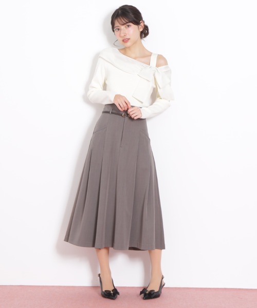 プリーツ風に見えるタックを入れたフレアスカートトレンドのベルトがSETになっている嬉しいアイテムです。斜めに入れたスラッシュポケットが今年らしいポイント。ボーダーニット×ソックスと合わせてフェミニンな着こなしにも◎。ブラウスと合わせれば、オフィスシーンにも活躍できます。※撮影時照明の関係により、色味が違って見える場合がございます。またパソコン・スマートフォンなどの環境により、若干製品と画像のカラーが異なる場合もございます。予めご了承ください。商品の色味は、商品単品画像をご参照下さい。※商品画像はサンプルのため、色味やサイズ等の仕様に変更がある場合がございますので、予めご了承ください。◆お買い物をよりお楽しみいただくために◆・「商品のお気に入り登録」で完売カラーの再入荷やラスト1点、セール通知を受け取ることができます。・「ブランドのお気に入り登録」で新商品の入荷情報など、いち早く受け取ることができます。