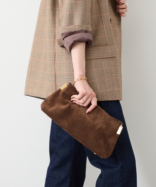 上品な雰囲気が漂う、MAESTOSOのスエードバッグ。 モダンな佇まいが印象的なデザインにゴールドの金具が女性らしい雰囲気を醸し出します。 シンプルで美しく、シーンを選ばず活躍するタイムレスなデザイン。 ブラウンのスエード素材は品の良い洗練されたスタイルに導きます。 〈MAESTOSO/マエストソ〉 ルーマニアのブカレストで建築を学んだデザイナー・クラウディアによる、彫刻的なシルエットやエッジを加えたミニマリズムにアプローチしたデザインが特徴のブランド。 幼少期に培われたデザインやアートへの情熱・感性は時代を超えても変わらず、卓越した職人技と選び抜かれた上質な素材を用いて長く受け継がれるものづくりを実現しています。 ※メーカー型番:AURORA BAGUETTE SUED ※カラーについて 弊社販売カラー名:メーカーカラー名 ブラウン(020):CHOCOLATE ※サイズについて 弊社販売サイズ名:メーカーサイズ名 フリー(999):F ※商品の素材特性により色落ち、色移りの可能性がございます。予めご了承ください。 ※取り扱いについては、商品についている取扱表示にてご確認下さい。 ※照明の関係により、実際よりも色味が違って見える場合があります。 またパソコン・スマートフォンなどの環境により、若干製品と画像のカラーが異なる場合もございます。 ※商品の色味は、商品アップ画像をご参照ください。 ※こちらの商品はお一人様1カラー・1サイズにつき1点までの購入とさせていただきます。