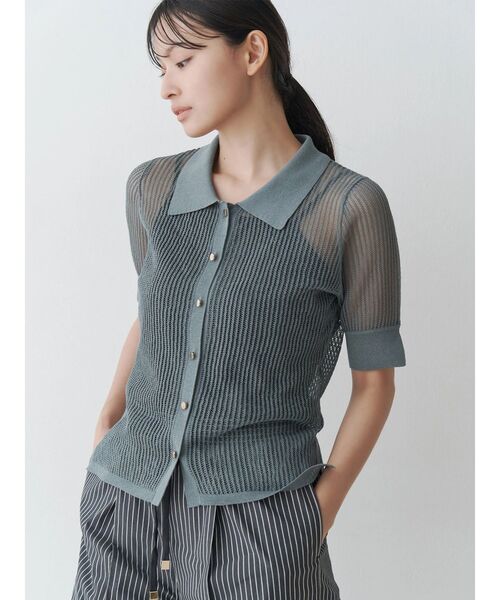 涼しげな透け感ときちんと感を両立した、進化系サマーポロニット。 縦ラインを強調する透かし編みで、清涼感たっぷりの表情に仕上げた半袖ニットシャツ。身体のラインを拾いすぎないコンパクトなシルエットが、大人の上品さを引き立てます。 きちんと感をプラスするシャツカラーと、アクセントになるメタルボタンで、1枚でもレイヤードでも着映えするデザイン。 キャミソールやタンクトップとのレイヤードはもちろん、ジレやジャケットのインナーとしても映える万能アイテムです。 【 ZOZOTOWNでお買い物を楽しむ便利機能 】 ■商品のお気に入り登録 完売カラーの再入荷時、ラスト1点の時、セール開始時にお知らせします。予約アイテムが入荷して通常販売になった時もお知らせしてくれます!その他お得な通知も盛りだくさんです。 ■ブランドのお気に入り登録 新商品や再入荷、セール情報など、いち早くブランドのお得な情報を受け取ることができます。 ぜひご活用ください!