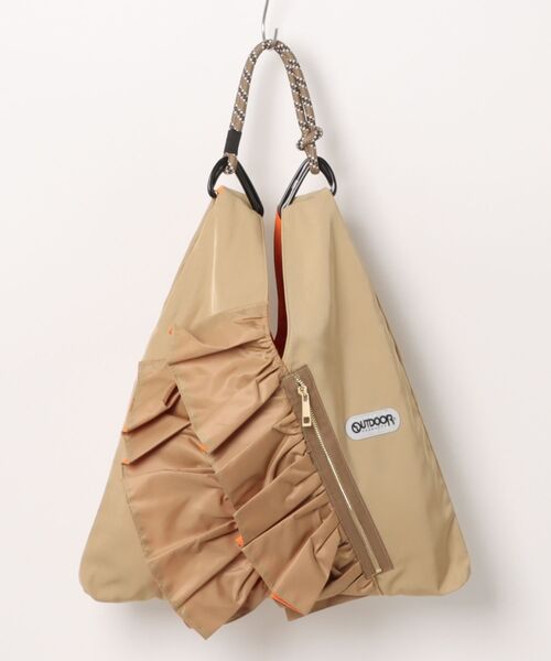 【RISLEY×OUTDOOR(リズレイ×アウトドア)】 人気のRISLEYとOUTDOORのコラボアイテム ミリタリーのカッコ良さと可愛いがドッキング!フリルが目を惹くトートバッグです。 片面のみフリルデザインで反対面はシンプルデザインなので、 持ち方を変えることで雰囲気を変えられます。 内側はA4サイズや長財布、 ペットボトルが収まるサイズ感。 アウトポケットは止水テープを施したジップポケット。 スマホや財布、カードケースなどの収納が可能です。 持ち手のカラビナは取り外しが可能で、ハンドバッグとしても◎ カラビナを残して持ち手のロープだけを他のストラップに付け替えれば、 斜め掛けバッグにすることも可能です◎ メーカー品番:R2501-TFB36