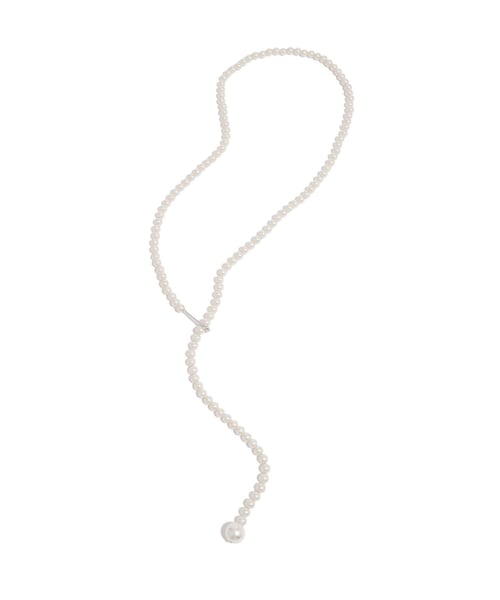【デザイン・シルエット】 セレモニーなどハレの日にもスタイリングしやすい、シンプルなパールネックレスです。 フックでお好きな位置に引っ掛けるように留める仕様なので、ラリエットやロングタイプ、バックシャンなショートや2連ネックレスにしても楽しめる、マルチWAYの仕様です。6mm玉の程よいパールサイズで上品に纏まります。様々なシーンで対応できるよう、シルバーのフックをあしらっています。フックはオリジナルでデザインし、6mmのパールに自然に馴染むサイズ感を意識しました。 【スタイリング】 シンプルなシャツブラウスやTシャツ、ジャケットコーデやニットコーデでの普段使いのほか、ハレの日のセレモニーシーンにもおすすめです。 【素材】 重厚感のあるガラスパールを使用。 ※画像の商品はサンプルです。実際の商品と仕様、加工、サイズが異なる場合がございます。 ※撮影場所やライティング、お使いのモニター環境によって色の見え方が異なる場合がございます。 ※商品のカラーは画像の色味をご参照ください。動画は仕様説明のため、色味が実物と異なる場合がございます。