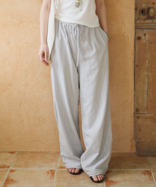 ■POINT・細かな刺繍ラインの入った、さらっと軽い素材感のコットンパンツ。・背面のポケットについた細かなフリルがさりげないポイント⭐︎・ポケットは背面に2つ、さらに両サイドにも2つ付いているので携帯や鍵など様々なアイテムを収納できます◎・裾はドロストで絞ることも可能です!コーデやシーンに合わせて2wayで楽しむことが可能です。■STYLING・透けにくい裏地付きのため、明るいカラーも一枚で着用可能◎→上にスカートや巻きスカートなどをレイヤードして着用するのもおすすめです!・ぺたんこシューズなど底が低いシューズを合わせるときは裾をドロストで絞るのがおすすめです!■COLORWHITE / BLACK / BLUE GRAY------------------透け感:なし裏地:あり伸縮性:なし(ウエストと裾ドロスと部分は伸縮します)ポケット:あり(背面と両サイドの計4つ)------------------■SIZE0,10サイズ:ウエスト64~94cm/ヒップ104cm/前股上26cm/股下67cm1サイズ:ウエスト68~96cm/ヒップ108cm/前股上27cm/股下73cm▼商品のお気に入り登録再入荷通知や、ラスト1点の通知、セールの通知がいち早く届きます。▼ブランドのお気に入り登録新商品や再入荷など、いち早くブランドのお得な情報が届きます。※画像の商品はサンプルです。実際の商品と仕様、加工、サイズ、素材等が若干異なる場合がございます。※ご注文いただいた予約商品のお届け時期の確認は、注文履歴ページより行えます。