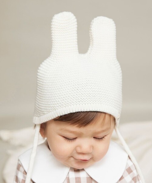 うさ耳が可愛いベビーニット帽♪ ■商品ポイント ・細編みで編み目がしっかりしているので 寒い季節にも風が通りにくくあったかいです ・しっかりめの編地なので耳がピンと立つのも可愛いポイント! ・あご紐を結んでも使用できるため お出かけの際に動き回っても ベビーカーで寝ていても脱げにくく安心です ・オリジナルネームもうさぎのシルエットが隠れていて さりげないこだわりポイントです ※モデル着用写真についてはイメージの為、実際の 商品とカラーや仕様が異なる場合がございますので、 商品画像をご覧ください。 ※商品の色味につきまして、お客様のお使いのPCの モニター環境により実際のカラーと画像の色味が 違って見える場合が御座います。 予めご了承の上、ご注文下さい。 ※店頭・外での撮影画像は光の加減で、 実際の商品より明るく見える場合が御座います。 子ども/子供/こども/子供服/キッズ/ジュニア/男の子/女の子