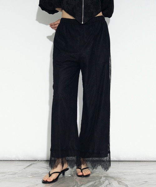 ”Ezick”【design】コーデを足元から華やかにする、レースパンツが登場。裾はヒゲレースで抜け感を出すことで、一癖あるモードな印象に。ウエストはゴム入りで紐も付いているので、リラクシーな着心地ながらも、360°綺麗なシルエットが維持されます。インナーパンツは足捌きの邪魔をしないさらっとした生地で、ノンストレスにご着用頂けます。セットアップで着用していただくとよりモードな印象に。【stylingitem】・scallop lace ダブルレースジャケット/setup対応(575659)・2P frill bustier タックキャミドレス(577771)・balloon corset ジャガードブラウス(495825)--------------------------------------------------伸縮性/ウエストゴムあり厚み/薄め裏地/あり透け感/レース部分透け感ありポケット/あり---------------------------------------------------※商品名とタグの記載名が異なる場合がございますが、商品に問題はございません。※サンプルにて撮影をしておりますので、実際の商品とは色味・仕様や加工・サイズ等が若干異なる場合がございます。予めご了承くださいませ。※商品の取り扱い方法につきましては、タグ等に記載されている「取り扱い上の注意」「洗濯表示」をご確認ください。※屋外での撮影画像は、光の当たり具合で色味が違って見える場合があります。あらかじめご了承ください。なお商品の色味は、スタジオ撮影の画像をご参照ください。 ....................≪INFORMATION≫......................▶Ezick(エジック)これからの時代を生きる女性が、自分らしさをもっと自由に楽しみ、磨き上げていくためのレディモードブランド。今の気分をMIXさせながらも自分らしさを表現できる、女性の等身大の美しさと憧れを提案します。-オフィシャルInstagramにて最新情報や限定情報を毎日更新中!-▼ 商品のお気に入り登録 ▼完売カラーの再入荷やラスト1点、またプライスダウンしたセール通知を受け取ることができます。ぜひご登録ください。▼ ブランドのお気に入り登録 ▼新商品や再入荷など、ブランドのお得な情報をいち早く受ける事が出来ます。ぜひご登録ください。※ご注文いただいた予約商品のお届け時期の確認は、注文履歴ページより行えます。"
