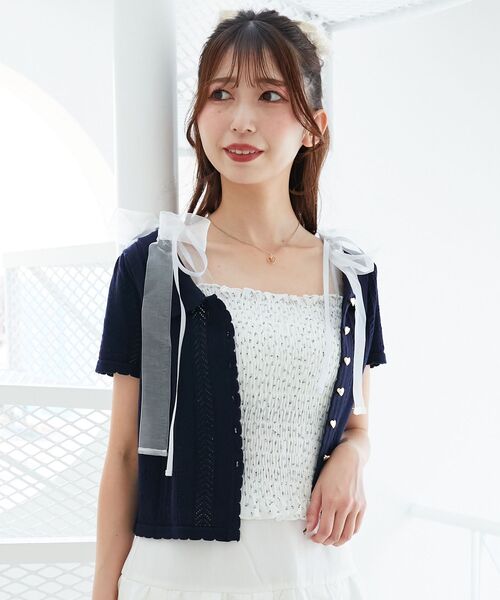 華奢見えを叶える♪ハートボタンが映えるガーリーカーデ ■デザイン 幅広い場で活躍すること間違い無しのサマーニット。 襟付きデザインできちんと感もプラスしつつ、ハート型のボタンや、透かし柄、スカラップ等ガーリーな甘さもしっかり取り入れました◎ ラインを拾いすぎず身体に沿うコンパクトなシルエットで華奢見え効果も抜群。 デコルテを綺麗に見せる広めの襟ぐりもポイントに。 トップスとしても羽織としても使える万能アイテムです。 ■サイズ感 程よくコンパクトなシルエットでスタイルアップ見えを叶えます。 ※ネックポイントからの着丈:43cm ■スタイリング きれいめにもガーリーにも合わせやすい万能なアイテム。 ミニボトムともロングボトムとも相性抜群です。 ・・・・・・・・・・・・・・・・・・・・・・ 透け感:ややあり(透かし柄) 裏地:なし 伸縮性:あり 光沢感:なし 生地の厚さ:普通 ・・・・・・・・・・・・・・・・・・・・・・ ■商品のお気に入り登録 再入荷通知やのこりわずか、お得なプライスダウンの情報も受け取ることができます。 ぜひご登録ください◎ ※サンプルでの撮影の為、製品と仕様が異なる場合がございます。 ※商品の色味は、撮影場所や光のあたり具合などにより色味が違って見える場合がございます。 また、お客様のお使いのモニター環境などにより色味が異なって見える場合がございます。 予めご了承の上ご注文下さい。