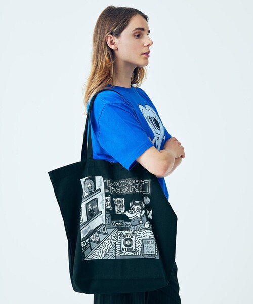 - Chocomoo × JUN SPECIAL COLLABORATION -今回JUNの6ブランドとChocomooのコラボレーションを実現。音楽とカルチャーを発信するbonjour recordsからは、ChocomooのPOPなクリエーションをbonjour recordsらしい世界観で表現。 フロントにbonjour recordsの店内をイメージした描き下ろしイラスト、バックにbonjour recordsロゴをプリントしたコットンキャンバストートバッグ。【Chocomoo/チョコムー】京都出身のイラストレーター。POPで独創的な作品全てモノトーンで描くのが特徴。日本をはじめ海外のアパレルブランドや企業とのコラボレーションなど、様々なアーティストへのアート提供をしている。また国内外でのアートショーにも参加する等、幅広いシーンで活動中。