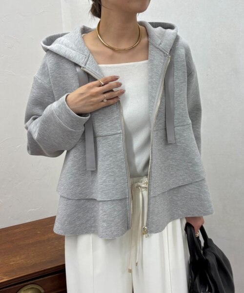 フェミニンさとカジュアルさを絶妙に融合させた、大人のためのフーディー -商品ポイント- ・ウエストからふんわりと広がる二段のフリルデザインが、女性らしい柔らかさと動きを演出してくれるフード付きパーカー。 ・肌馴染みよく着回しの効く万能カラーで、ゴールドのファスナーが程よいアクセントになり高級感をプラス。 ・フードのリボン部分には、光沢感のあるサテン調の素材を使用し、細部までこだわったデザインが印象的。 ・ドロップショルダーとゆったりとした袖まわりで、リラックス感のある着心地。気になる体型もさりげなくカバーしてくれます。 ・タイトスカートやスリムパンツと合わせて、メリハリのあるシルエットを楽しむスタイリングが特におすすめです。 【Q&A】 Q : 生地は厚めですか?春や秋にも着られますか? A : はい、やや厚手でしっかりとした生地感ですが、通気性もあるため春・秋はもちろん、 冬はインナーを重ねて長く着用いただけます。 Q : 洗濯は自宅でできますか? A : はい、ご自宅での手洗いが可能です。 Q : サイズ感はゆったり目ですか? A : Fサイズですが、レディースM〜L相当のゆったりシルエットで、 重ね着もしやすいデザインです。 Q :フードは取り外しできますか? A :フードは一体型で、取り外しはできません。 ーマテリアルー ■透け感:なし ■裏地:なし ■伸縮性:なし ■光沢感:なし ー洗濯方法ー 手洗い可能 ー注意事項ー 商品の画像はできるだけ実物に近い色味で掲載しておりますが、ご覧になるモニターや照明の環境により、実際の色味と若干異なって見える場合がございます。 あらかじめご了承くださいませ。 ・画像の商品はサンプルです。 実際の商品と仕様、加工が若干異なる場合があります。 ・サイズ表記はあくまで目安となります。 __________________________________ ※取り扱いについては、商品についている品質表示でご確認ください。 ※照明の関係により、実際よりも色味が違って見える場合があります。 またパソコン・スマートフォンなどの環境により、若干製品と画像のカラーが異なる場合もございます。予めご了承ください。 ※詳細画像の色合いをご参照ください。予めご了承ください。 __________________________________ 【お買い物をよりお楽しみいただくために♪ 】 ▼ 商品のお気に入り登録 お気に入りアイテムのお値下げ・再入荷・在庫ラスト1点など通知を受けることができます。 ▼ブランドのお気に入り登録 Jena espace merveilleuxの新商品や再入荷、セール、クーポン配布などお得な情報を受けることができます。