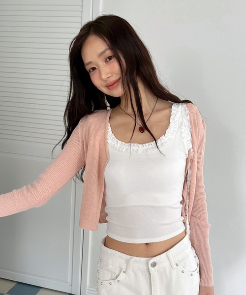 [フリルスクエアタンクトップ ] タンクトップ一枚だけで完璧なコーデが完成できる万能なフリルタンクトップをご紹介します! ▼ ポイント - フリルディテール - スクエアネックライン - 脇周りをカバー ▼ ディテール 伸縮性に優れたリブ編み素材のフリルタンクです! フリルディテールでラブリーながらも スクエアネックラインが大人の洗練されたスタイルを演出してくれます フィット感のあるサイジングで女性らしいボディラインを強調してくれて、脇周りまでカバーするので着瘦せコーデまでできます♥ MDもゲットしちゃったタンク! 注目してください♡ ▼おすすめコーデ どんなスタイルにも似合うタンクです! デニムともラブリーなスカートとも似合い モデルのコーディネートも参考にしてください! *ご覧のモニター環境や撮影環境に応じて実際 商品の色と異なって見える場合がございますので、ご了承ください。 *素材の特性を考慮して管理法留意事項を購入/着用する場合は必ず 確認お願いします。 サイズ感: 普通 伸縮性:普通 肌触り:普通 厚み:普通 透け感:なし 【 by muni:r 】 by muni:rは時代の流れに沿って早く変化する韓国のトレンドと多様なファッションアイテムで、 韓国のファッションと日本のファッションの良さをひとつにまとめた トレンディなコンセプトを提案するブランドです。 ★商品お気に入り登録 [お気に入り登録] を押すと登録完了! お好きなアイテムとサイズのカラーを登録すると再入荷、販売のお知らせ等を受け取れます。 ★ブランドお気に入り登録 新商品、お買い得情報、クーポンなどをできるだけ早く通知を受け取れます。 - ブランドの最新情報はinstagram【@by__munir】でご確認いただけます! * 注文履歴ページよりご注文いただいた商品の配送時間を確認できます。 * 他のキャンペーンにより、価格が変わる場合があります。