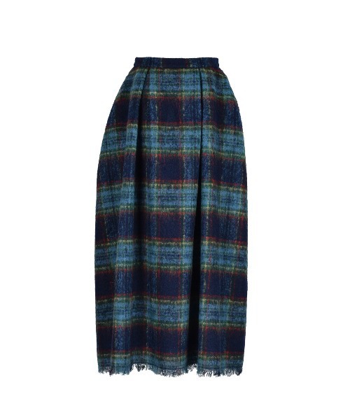 ネップ入りの糸や太さの違う糸を交えて織ったファンシーツイード地を贅沢に使ったスカート。 ウエスト部分にタックを入れ、ふんわりとしたフェミニンなシルエットを、切りっぱなしの裾や大ぶりなチェック柄でストリート感をももたせています。