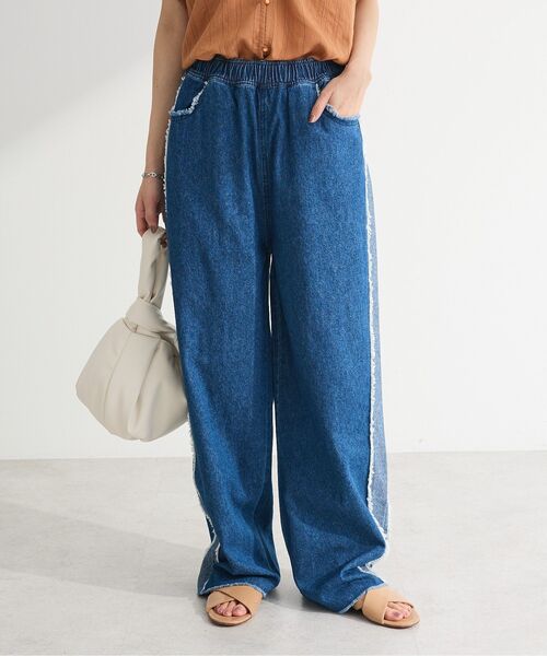 柔らかなコットン素材で仕立てたイージーな穿き心地を叶えるデニムパンツ。ポケットやサイドラインにあしらった配色フリンジがおしゃれなアクセントをプラスします。ウエストゴムのドロスト付きで着脱も楽ちん。シンプルなトップスと合わせるだけでこなれたコーディネートが完成するおすすめのアイテムです。透け感[なし]生地の厚さ[普通]光沢感[なし]伸縮性[なし]裏地[なし]ポケット[あり]※モデル着用画像は、光の当たり具合で色味が違って見える場合がございます。※お使いのモニター環境によって商品の色味が違って見える場合がございます。●Green Parks (fuuwa / topic / sara)●(グリーン パークス)20以上の人気ブランドを取り扱う、全国に約320店舗展開するアパレルセレクトショップ。ベーシックながらもさりげなくトレンドを取り入れたオリジナルブランドchocol raffine robeも展開。▼ 商品のお気に入り登録がおすすめです ▼商品ページ内のハートマークをクリック。完売時の再入荷や、最後の1点の通知、コーディネート画像がアップされたとき、お得なお値下げの際の通知を受ける事ができます。【お知らせ】ページでも通知が確認できます。