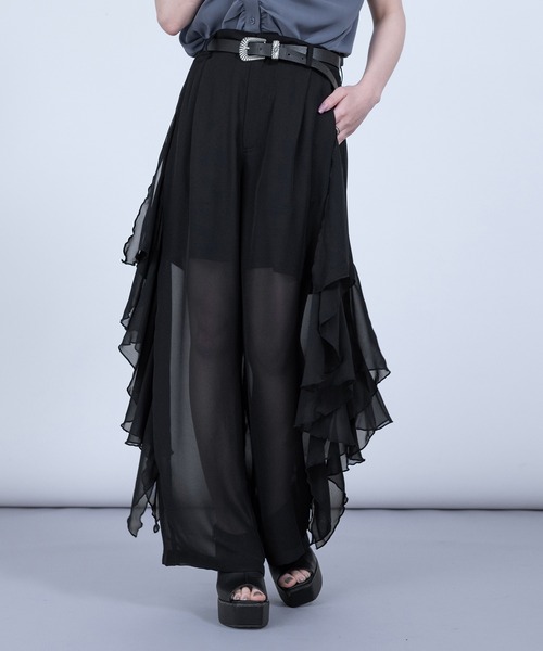 "Ellno de Mavie" 履くだけで差別化が叶うモードな1本。 女性らしさとモードな雰囲気を両立した、ラッフルシアーパンツが登場します。 程良い透け感で露出感が少なく、肌見せが苦手な方でも挑戦しやすいシアー生地を採用。 軽やかなシアー素材と、波打つように重ねられたラッフルフリルが印象的に。 歩くたびに揺れるシルエットが、エレガントな存在感を放ちます。 ペチパンツ付きでインナーにも困らない仕様。 ウエストにはベルトループ付きでタックインスタイルも映えるデザイン。 綺麗めブラウスと合わせれば大人の抜け感スタイルに、シャツやシアージャケットを合わせてカジュアルダウンも。 〈素材感〉 ※シアー生地は繊細な生地なので、強く引っ張るなどの衝撃で破れていしまうことがあります。 ご着用の際はご注意をお願いします。また、洗濯は手洗いを推奨しております。 透け感:あり 厚さ:普通 伸縮性:ウエストゴムあり(後ろ) 裏地:ペチパンツ付き(ドッキング仕様) 〈おすすめスタイリングアイテム〉 ・パイピングレースチャイナブラウス(572393) ・チョーカーベルトギャザートップス(579465) ・シアーポロシャツ(576384) 【Ellno de Mavie/エルノデメヴィ】 日常から非日常に上品且つ華やかさを彩り、 あなたの日々に寄り添うレディースモードブランド. ・・・・・・・・・・・・・・・・・・・・・・・・・・・・・ ellno_de_mavieインスタグラムでも商品情報をご覧いただけます。 インスタライブで新作アイテムをご紹介。 ・・・・・・・・・・・・・・・・・・・・・・・・・・・・・ ※着用、お取り扱いの際は、商品に付いている品質表示と アテンションタグを必ずご確認ください。 ▼商品のお気に入り登録 完売カラーの再入荷通知や、ラスト1点、セールの通知をお知らせ致します。 ▼ブランドお気に入り登録 新商品や再入荷など、いち早くブランドの情報を受け取ることができます。 ※サイトに表示されているカラー名と実際のお届け商品に記載されているカラー名が異なる場合がございます。"