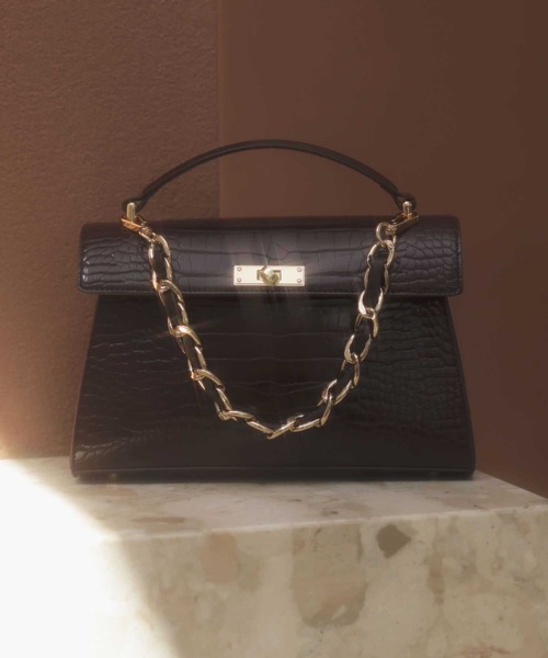 ほんのりツヤを帯びたクロコダイル風の型押し素材に、ゴールドの金具が映える、クラシックでリッチな表情のハンドバッグ。手持ち用のハンドルに加え、アクセサリー感覚で使える短めチェーンハンドル、カジュアルにも持てる本体と同素材のショルダーストラップ付き。どちらも取り外し可能で、スタイルに合わせてアレンジ自由自在です。 ※不良品や配送不備以外での返品・交換はお受けいたしかねます。あらかじめご了承ください。 ※掲載商品はサンプルのため、実際の商品とは色味・仕様・加工・サイズ等が若干異なる場合がございます。あらかじめご了承ください。 ※商品の詳細な色味・仕様につきましては、商品単体のトルソー画像をご参照ください。 ※撮影時の照明やご利用のパソコン・スマートフォンの設定により、実際の色味と異なって見える場合がございます。あらかじめご了承ください。 ------------------------------------------------------------ 【お気に入り登録】でお得にお買い物! ■商品のお気に入り登録 完売カラーの再入荷や在庫残り1点の通知、値下げの通知などを受け取ることができます。 ■ブランドのお気に入り登録 新商品や再入荷情報、クーポン配布などのお得な情報を受け取ることができます。 ------------------------------------------------------------