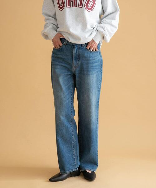 スタイリングに重宝する、こだわりが詰まった王道ストレートデニム着るほどに馴染む、11.5ozのコットン100%のデニム生地を使用。まっすぐに見えるシルエットと、脚のラインを拾いすぎないすっきりとしたサイズ感にこだわりました。右もも部分にさりげないダメージ加工を入れつつ、大人の女性も着こなしやすい雰囲気に仕上げています。シーズンレスで使いやすいインディゴとトレンド感のあるグレーの2色展開です。POINT・選べる3サイズ展開・シンプルで長くお使いいただけるデザインCOORDINATE細すぎず、太すぎないシルエットで幅広いトップスと好相性◎トップスインでもアウトでもバランスよく着用できます。【2025 Autumn/Winter】【25AW】※この商品は素材の特性上、汗・水・摩擦等により色落ち・色移りをする恐れがありますので、ご着用・洗濯などの際は、充分にご注意ください。※その他お取り扱いに関しましては、商品に付属のアテンションタグをご覧ください。洗濯方法 : 洗濯機洗い可※商品画像は、光の当たり具合やパソコンなどの閲覧環境により、実際の色味と異なって見える場合がございます。予めご了承ください。※商品の色味の目安は、商品単体の画像をご参照ください。▼お気に入り登録のおすすめ▼お気に入り登録商品は、マイページにて現在の価格情報や在庫状況の確認が可能です。 お買い物リストの管理に是非ご利用下さい。素材感透け感 : なし伸縮性 : ややあり裏地 : なし光沢 : なしポケット : あり383436