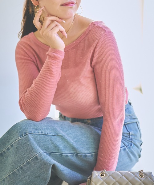 きらめくシアー感。大人のためのリラックスフィットリブトップス ●デザイン 繊細なスパンコールが上品にきらめく、大人の女性のためのリブニットトップス。 シアーな素材感がほんのりとした抜け感を演出し、トレンド感も漂います。 ボディに優しくフィットするリブ編みで、すっきりと見せつつも締めつけ感のない快適な着心地。 柔らかく、さらっとしたタッチで、ロングシーズン活躍します。 ネックラインは前後2WAY仕様。 片面はデコルテを美しく見せるボートネック、もう片面は大きく開いたラウンドネックで、 気分やスタイリングに合わせて着こなしの変化を楽しめます。 コンパクトでシンプルなシルエットは、1枚着はもちろんインナーとしても重宝。 カジュアルからきれいめまで幅広く着回せる、頼れる一枚です。 ※同素材の型違いのご用意もございます ・シアースパンコールポロリブニット(LBZ1052305A0005) ・シアースパンコールハイネックリブニット (LBZ1052505A0002) ●ポイント ・上品なラメ感 ・軽やかで抜け感のあるシアー素材 ・着回し力抜群 ・手洗い可能 ●おすすめのコーディネート キャミソールやタンクトップの上から着用してヘルシーな肌見せスタイルはもちろん ノースリーブのアイテムのインナーとしてレイヤードすることも可能です。 ジャケットやカーディガンを羽織れば、オフィスにも対応できるきちんと感を演出できます。 柄物のインナーを合わせて、個性をプラスするのもおすすめです◎ 洗濯方法:手洗い 透け感:あり 裏地:なし 生地の厚さ:薄め 伸縮性:あり #cate001