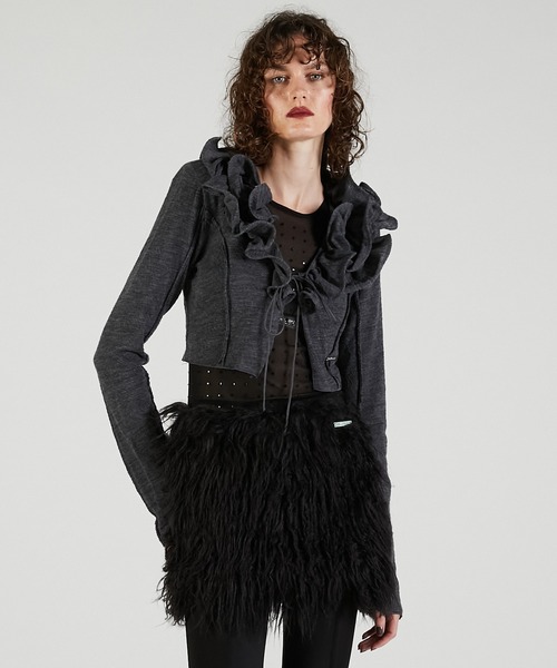 ー Style ーワイヤーで独特のウェーブ感を出したフリルがキャッチーなカーディガン。ランダムなフリルとボリューム感で顔周りを華やかな印象に。フロントのリボンを結んでトップス感覚での着用がおすすめ。女性らしいディティールとカジュアルなカットソー素材のミスマッチさが楽しめるアイテム。ー Fabric ー表面に凹凸のあるウールカットソー素材を使用。肌にフィットする質感が心地の良い素材。【PRANK PROJECT/プランクプロジェクト】常識に縛られない洗練された大人の女性に向けて”意外性” と ”品の良さ” をMIXさせた上質なNEW MODE BRAND・商品のお気に入り登録再入荷、残り1点などの通知を受け取ることが出来ます。・ブランドのお気に入り登録新商品や再入荷、ショップのおすすめトピックスなど、いち早くブランドのお得な情報を受け取ることができます。