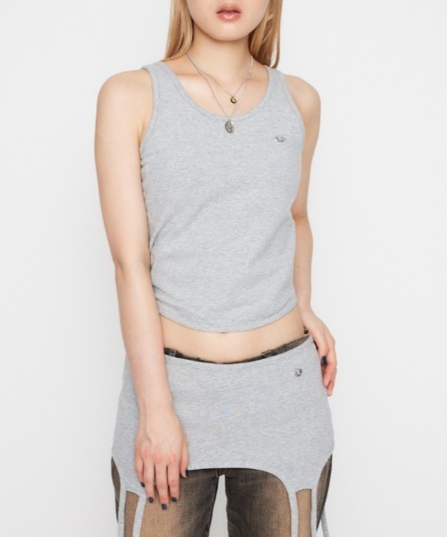 ■POINT:メタルモチーフがポイントのカップ付きタンクトップ。2ピースなので様々な着方が楽しめる一着。■DETAIL:タンクトップはコンパクトなシルエットで、裾はヘムラウンドのディティールに。カップ付きなのでインナーを気にせずに着用できるのも嬉しいポイント。■STYLING:さらっと一枚で着用するのはもちろん、シャツやパーカーなどのインナーとしても重宝するアイテム。デニムやスラックスなど、腰回りがすっきりとしたボトムと合わせるのがおすすめ。■透け感:なし■光沢感:なし■伸縮性:あり■裏 地:あり※本品は素材の特性上色落ちします。洗濯、クリーニング、着用(使用)時に他の衣類や雑貨、家具類に色移りする事があります。特に汗や雨等で湿った状態では、色落ちが顕著になります。白、淡色との組み合わせは避け、お取り扱いには十分ご注意下さい。_____________________LAGUA GEM(ラグア ジェム)ー媚びない強さとしなやかな女性らしさが共存するスタイルーカジュアルなアイテムにストリート&ヴィンテージテイストをミックスメンズライクになりすぎない女性らしさとバランス感のある着こなしにこだわった新しいカジュアルスタイルを提案_____________________▼商品のお気に入り登録お気に入りアイテムの値下げ・再入荷・在庫1点などの通知を受け取ることができます。▼ブランドのお気に入り登録新商品や再入荷、セール、クーポン配布などお得な情報を受け取ることができます。SUMMER/夏服