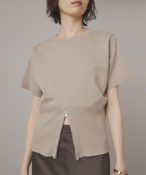 ジップで印象チェンジ、肌見せも楽しめる夏ニット 薄手のサマーニット素材で仕立てた、軽やかな着心地のトップス。 フロントの裾ハーフジップが特徴で、開閉によりさりげない肌見せを楽しめます。 ウエストラインを美しく見せる、緩やかなシェイプシルエット。 ミニマルながらモードな要素を取り入れた、今年らしい一枚です。 ------------------------ 透け感/なし 光沢感/なし 伸縮性/あり 裏地/なし 厚み/薄手 ------------------------ ※着用中の摩擦や、汗、水濡れにご注意ください。濃色品は、色落ちや他のものへ色移りすることがあります。 ※ファスナーの開閉時は、生地を挟まないようご注意ください。無理な力を加えると故障の原因となる場合がございます。 【必ずご確認の上、ご検討ください】 ※商品画像は撮影時の光や角度、お使いの照明やモニター環境により実物の色味と異なって見える場合がございます。 ※サイト上のカラー・サイズ表記と商品タグのカラー名・サイズ名が異なる場合がございます。 ※着用、お取り扱いの際は商品についておりますアテンションタグ、洗濯ネームを必ずご確認ください。 ※生産時期により、色・素材・サイズ感など多少異なる場合がございます。 ※商品によっては、繊維や染料のにおいが感じられる場合がございます。 数日のご使用や陰干しなどで匂いはほとんど感じられなくなりますのでお試しください。 ※通販の特性上、到着時には畳みシワがついている場合がございます。 【Information】 ◆《お気に入り登録》がオススメ◆ ・「商品のお気に入り登録」で再入荷通知や、ラストの通知、セール通知も受け取ることが出来ます。 ・「ブランドのお気に入り登録」で新商品や再入荷など、お得な情報を受け取ることが出来ます。