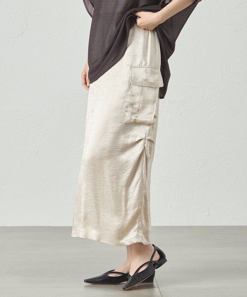 【CAST:キャストコロン 2025年秋冬アイテム】【Design】サテン生地のカーゴデザインスカート。大きめポケットがデザインポイントです。サイドにタックを入れることで、立体感のあるシルエットに仕上げています。1枚でサマになり、合わせるトップス次第で長い期間着用出来ます。ウエストゴム仕様で、履き心地も抜群です。※カーキ(79)カラーはLOVELESS店舗とオンライン限定カラーです。【Fabric】絹のように優雅な光沢と独特な素材の表情感が特徴です。サラッとした風合いで、快適な着心地になっています。【Styling】どんなデザインのトップスとも合わせやすいデザイン。暑い時期にはカットソー、少し涼しい時期にはニットとの合わせがおススメです。●洗濯:手洗い可透け感:なし伸縮性:あり生地の厚さ:普通おすすめ着用期間:春、夏、秋、冬※この商品はサンプルでの撮影を行っています。実際の商品とイメージ、サイズ、品質表示、原産国等が異なる場合がございます。※店頭及び屋外での撮影画像は、光の当たり具合で色味が違って見える場合があります。商品の色味は、スタジオ撮影の画像をご参照ください。