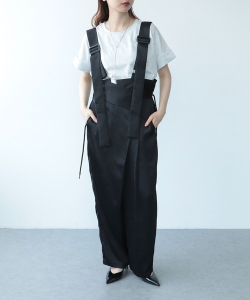 ■商品詳細サテンの光沢感が大人っぽいサロペット。ワイドなシルエットと落ち感ある素材感が子供っぽくならない大人カジュアルに最適のアイテムです。ウエストのドロストコードと取り外し可能な肩紐が自由な着方が出来てオシャレ見え抜群です。サロペット、パンツ、ワンショルダーと3WAYの着こなしが可能です。-------------------------------------透け感:なし裏地:なし伸縮性:なしケア方法:洗濯可※お洗濯の際は洗濯表示を必ずご確認ください。--------------------------------------<コーディネートmodel160cm><コーディネートmodel155cm><詳細画像model162cm>[SEVEN DAYS]ちょっぴりエッジの効いたカッコよさのある大人カジュアルベースを展開。トレンドを抑えながらも様々な組み合わせを楽しめるアイテムを提案する。