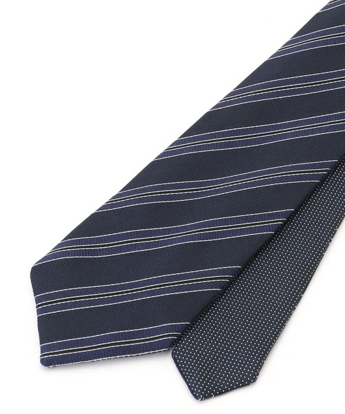 JAPAN made ストライプ/ピンドット リバーシブルネクタイ ■素材 表面にストライプ、裏面にピンドットを使用。 ベーシック柄の上品なスタイリングを演出する日本製ネクタイです。 ■デザイン 両面使えるリバーシブル仕様のネクタイ。 ※照明の関係により、実際よりも色味が違って見える場合があります。 またパソコン・スマートフォンなどの環境により、実際の商品と色味に若干の誤差が生じる場合があります。 予めご了承ください。