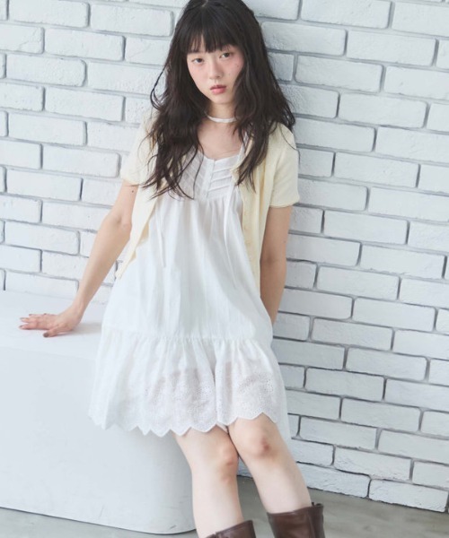 ■夏に着たいコットンレースワンピース■ 軽やかなコットン素材にスカラップレースが映えるミニワンピース。 ふんわり広がるシルエットで、1枚で着てもパンツとレイヤードしても抜け感のあるカジュアルスタイルに仕上がります。 夏にぴったりの涼し気なコットン素材。 首元にトレンド感をプラスできるチョーカーつき。 太めの肩紐で安心感があり、キャミワンピースが苦手な方にもおすすめです。 ミニボトムと合わせればフェミニンスタイルにも◎ デニムやカーゴパンツとの相性も抜群で、夏に1枚持っておきたいアイテムです。 ーーーーーーーーーーーーーーー 透け感:OFF WHITEややあり 裏地:なし 伸縮性:なし 光沢感:なし 生地厚さ:薄め 洗濯方法:洗濯可 ※詳しいお手入れ方法は商品についているタグをご覧ください ーーーーーーーーーーーーーーー ※ご利用のモニター環境により、実際の色味と多少異なる場合がございます。 … information … 欲しいitemをお気に入り登録(♡マークをclick) ・お買いのがし対策…完売itemの再入荷やラスト1点の情報をお知らせ ・欲しいitemをお得にget…pricedownになったらいち早くお知らせ ・スムーズ検索…ZOZOのお気に入りアイテムページで簡単checkできるから、再検索不要♪