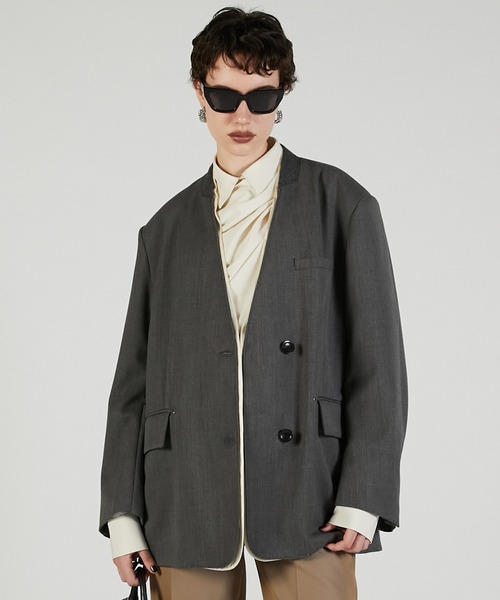 ー Style ーミニマルなノーカラーデザインに、さりげない配色が効いたジャケット。クリーンで端正な表情の中にPRANK PROJECTらしいエッジを効かせた一着。首元をすっきりと見せるノーカラー仕様で抜け感をプラス。フロントラインには配色を施し、アクセントに。所々に施したメタル使いでエッジをプラス襟や袖の開き部分には別地を使い、ミニマルな中にもコントラストを。同素材のパンツとセットアップで着用可能。オンスタイルにはもちろん、デニムなどと合わせたカジュアルミックスな着こなしにもおすすめ。ー Fabric ーヘビーウェイトなウール混素材を使用。しっかりとした肉感でロングシーズン愛用できる一品。【PRANK PROJECT/プランクプロジェクト】常識に縛られない洗練された大人の女性に向けて”意外性” と ”品の良さ” をMIXさせた上質なNEW MODE BRAND・商品のお気に入り登録再入荷、残り1点などの通知を受け取ることが出来ます。・ブランドのお気に入り登録新商品や再入荷、ショップのおすすめトピックスなど、いち早くブランドのお得な情報を受け取ることができます。