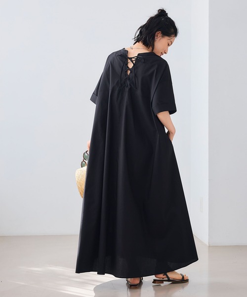 贅沢ボリュームと抜け感デザインで夏を彩る主役ワンピース ■エブ楽とは? Everyday 「楽」に着れるシリーズ。 365日毎日着たくなるような、着心地もお手入れも楽ちんな味方服。 《嬉しい2つの機能》 1.シワになりにくい シワになりにくく、お手入れ楽ちんなのでデイリー使いにおすすめ。 旅行先への持ち運びもシワを気にしなくていいのが嬉しい1枚です。 2.マシンウォッシャブル 汗をかいても、汚れてしまっても安心。デイリー使いにぴったり。 【デザイン】 ・程よくハリがありながらもソフトな肌触りで着心地にもこだわったボリュームシルエットのワンピース。 ・たっぷり生地を使用したフレアシルエットで、1枚で着映えする華やかなワンピース。 ・バックレースアップのデザインでシンプルな中にアクセントをプラス。後ろ姿でさりげなく女性らしさをプラスした抜かりない1着です◎ ・ゆとりのあるシルエットでもすっきり見えが叶うスキッパーネック。 ・ハーフスリーブなので二の腕カバーもばっちり。 ・使いやすいブラックと気分を上げてくれる鮮やかなブルーの2色展開です。 ・ワンピースにあると嬉しいポケット付き。 【コーディネート】 ・1枚でコーディネートが完成する優秀アイテム。 ・さらりと1枚での着こなしがおすすめ。キャップやハットなど小物で遊んだりコーディネートを楽しんで◎ ・デイリーにもリゾートスタイルにも幅広いシーンで活躍します。 【サイズ展開】 Mサイズ Lサイズ LLサイズ モデル身長:162cm 着用サイズ:Mサイズ 【洗濯・取り扱い】 洗濯:洗濯可 アイロン:可 乾燥:タンブル乾燥不可 ------------------------------------- 透け感:なし 伸縮性:なし 厚み:普通 裏地:なし 洗濯:可 -------------------------------------- ※撮影時のライティング、ご覧になっているモニター・PC環境により実際の商品と色味が異なって見える場合がございます。ご了承の上お買い求め下さい。 ■商品のお気に入り登録 ラスト1点や完売カラーの再入荷、セールの通知を受け取ることができます。 ■ブランドのお気に入り登録 新商品や再入荷、ショップトピックスなどブランドのお得な情報をいち早く受け取ることができます