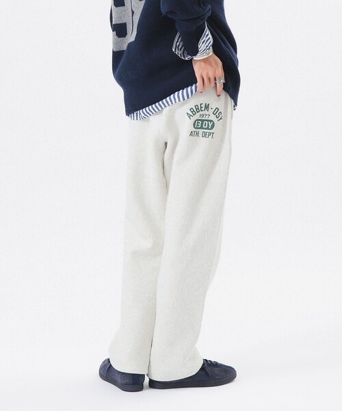 セットアップで映える、旬顔スウェットパンツ■デザイン〈BEAMS BOY(ビームス ボーイ)〉が〈Champion(チャンピオン)〉に別注した、バックプリントが目を引くリバースウィーブ(R) スウェットパンツが登場です。バイヤー私物の〈Champion〉ヴィンテージから着想を得ており、70年代から90年代のリバースウィーブ(R)にインスパイアされたロゴデザインが魅力。「BEAMS BOY」の文字を遊び心たっぷりに並び替えた、ユニークなメッセージにも注目です。■コーディネートオーバーサイズのクルーネックトップス【品番: 13-13-0408-411】とのセットアップスタイルはもちろん、シンプルなTシャツやブラウスと合わせて抜け感を出すのもおすすめです。足元はスニーカーでリラックス感を演出したり、あえてヒールのあるパンプスを合わせて大人っぽく着こなすのも旬なスタイル。カジュアルすぎず、幅広い着こなしが楽しめます。■ディテール裏毛部分はわずかに生地を痩せさせているため、厚すぎず、暖冬傾向にある近年の気候にフィットする快適な着心地にしています。■サイズ2サイズで展開。通常はONE SIZEで展開ですが、元ネタになったヴィンテージの細身のリバースウィーブ(R) パンツをイメージし、少量ながら細身のサイズも作製しました。オーバーサイズトップスとの相性を考慮した、計算されたシルエット。好みのフィット感に合わせてお選びいただけます。■素材柔らかく肌触りの良いコットンベースでありながら、ポリエステルを混紡することで型崩れしにくく、程よいハリ感も兼ね備えています。■ケア方法洗濯可(詳細は商品についている品質表示ラベルをご覧ください)※アイテムサイズは商品サンプルを採寸しているため、実際の商品と多少の誤差が生じる場合がございます。※画像の商品はサンプルのため、実際の商品と「仕様」「色味」が異なる場合がございます。Model : H161 B76 W60 H82 Size : SChampion/チャンピオン1919年にチャンピオン・ニッティング・ミルズ社として創業。その後アメリカ東海岸の学生たちに好まれ、スポーツウェアからカジュアルウェアへと浸透していきました。今ではアメリカを代表するアスレチックブランドであり“KING OF SWEATSHIRT”の代名詞として、その名を轟かせています。