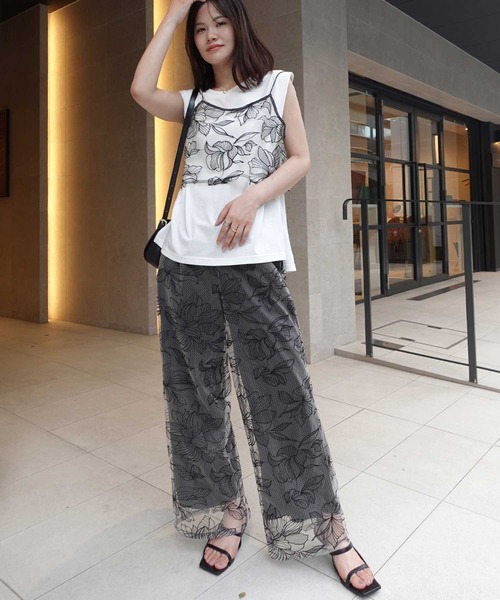 【CORNERS】華やかなチュール花柄刺ストレートパンツが登場しました!どんなシーンにも映えるアイテム。流れるようなラインと、上品な花柄刺繍が魅力を引き立て、女性らしいシルエットを演出します。パーティーから日常使いまで幅広く活躍できるので、是非手に入れたいアイテムです。 このパンツはセットアップ可能【 32670 】同じデザインのトップスと合わせることで、全体的に統一感のあるスタイルが楽しめます。カジュアルからフォーマルまで、シーンに応じた着こなしが可能。友達とのお出かけや、大切な日のコーディネートに最適です。▽生地感透け感:あり ●〇〇〇〇 なし生地の厚さ:厚い 〇〇〇〇● 薄い裏地:なし伸縮性:なし ◆商品のお気に入り登録【お気に入りに登録】を是非ご活用ください。 再入荷の通知や、ラスト1点の通知、セールの通知がいち早く届きます。 ◆ブランドのお気に入り登録新商品や再入荷など、いち早くブランドのお得情報が届きます。 ◆ATTENTION◆※取り扱いについては、商品についている品質表示でご確認ください。※出来る限り忠実に再現するよう務めておりますが、 ディスプレイ画面などの環境上、店頭・屋外での撮影画像は、光の当たり具合で色味が違って見える場合が あります。ご了承下さい。※こちらの商品は水や雨に濡れたり、汗による湿気、乾燥状態での摩擦により、薄い色の衣服などに 色移りする可能性がございます。予めご了承いただき、ご使用の際にはご注意くださいますようお願い致します。※平置きでの実寸のため若干の誤差が生じる場合がございます。※生産時期により若干の色ブレやサイズの変動が生じる場合がございます。※また製品加工上、お手元に届く際に匂いが生じる場合がありますが、 ご使用を続けていく事により匂いは軽減されます。※輸送時による、多少の汚れ・シワがある場合がございます。 ■海外製品の為、まれにキズや色糸混入、縫製の甘い・雑な商品、サイズにバラつきが見られる場合がございます。予めご理解の上、ご購入下さい。
