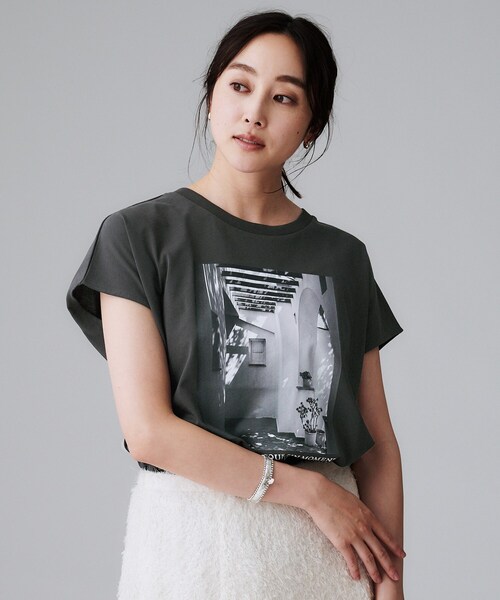 【デザイン】 リラックス感のあるシルエットの夏にぴったりなフォトTシャツ。 ゆるっとしたシルエットが涼しげでデイリーにご着用いただけます。 腕を出しすぎない長めのフレンチスリーブでコンプレックスポイントをカバー。 大きめのフォトプリントで一枚でインパクトのある印象です。 【素材感】 コットン100%の強撚天竺。 さらっとドライタッチな風合いが特徴で、カジュアルすぎない綺麗めな質感に仕上げました。 コットンならではの柔らかさと、非常に清涼感のある夏場のジャージ素材となります。 【着こなしポイント】 デニムやカジュアルパンツにおすすめです。 ※照明の関係により、実際よりも色味が違って見える場合があります。また、パソコン・スマートフォンなどの環境により、若干製品と画像のカラーが異なる場合もございます。 モデル情報:身長163cm B80 W59 H82 着用サイズ:02(M) 店舗へのお問い合わせ商品番号:153-13201 ●製品寸法: 00(XS):着丈58cm B111cm 肩幅59cm 02(M):着丈61cm B118cm 肩幅63cm 04(2LT):着丈63cm B124cm 肩幅66cm 44(3L):着丈64cm B132cm 肩幅70cm 48(5L):着丈66cm B140cm 肩幅73cm 50(6L):着丈67cm B144cm 肩幅74cm 備考: