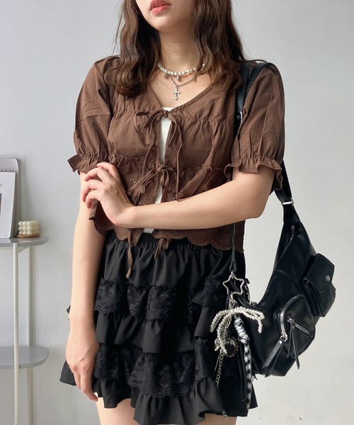 リボン結びデザインとパフスリーブが女の子らしい、トレンドライクなコットンレースブラウスコットンレースやリボン、パフスリーブなど、とことんガーリーな今っぽブラウスが登場☆気になる二の腕をカバーするフリル付きのパフスリーブと、程よく短い丈感でスタイルアップ効果も期待できちゃう♪ミニボトムやロングスカートとガーリーに合わせるのはもちろん、ヴィンテージ加工のデニムと合わせたトレンドライクなスタイリングもおすすめです。▼商品について・画像の商品はサンプルとなります。実際の商品と色味、仕様、加工、サイズ、素材等が若干異なる場合がございます。・サイト上のカラー名と、お届け商品に記載されているカラー名が異なる場合がございます。・商品の色味は、撮影場所や光のあたり具合などにより色味が違って見える場合がございます 。また、お客様のお使いのPCのモニター環境などにより色味が違って見える場合がございます。予めご了承の上ご注文下さい。▼お取り扱いについて・着用またはお取り扱いの際は、アテンションタグや洗濯ネームを必ずご確認ください。▼返品・キャンセルについて・着用、洗濯後の返品は致しかねます。・商品到着後、着用前に商品を確認して頂きますようお願い致します。♪商品のお気に入り登録お気に入り登録した商品は、ラスト1点になった時、完売商品の再入荷、セールになった時にお知らせします。♪ブランドのお気に入り登録新商品の発売、再入荷、セール情報など、ブランドのお得な情報を受け取ることができます。