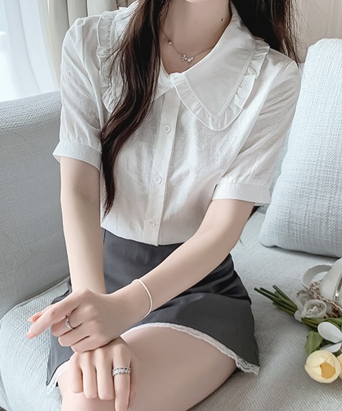 定番の襟付きブラウスが登場♡ ♡デザイン♡ 着回し抜群のブラウス。 ジャガード織でお花などの絵型が少し 浮きぼっているデザインで主張が強くなさすぎないので おしゃれに見える! 襟の部分もフリルになっていて一枚でも可愛く見えます♡ ♡カラー展開♡ ホワイト、ブルーの2色展開。 夏らしい色味です。 ♡生地♡ 本体:綿100%を使用。 生地も薄めで着やすい! ♡コーデ♡ チェックのロングスカートと合わせて大人ガーリーに♡ ティアードのミニスカートで夏らしく合わせても可愛いです! カジュアルに着こなしたい方は、デニムとかと合わせると◎ ~frunco shopping information~ ▼商品のお気に入り登録 完売カラーの再入荷通知入り登録 ♡をクリック!や、ラスト1点の通知、 セール商品の通知、をお知らせします。 ▼ブランドのお気に入り登録 新商品や再入荷など、fruncoのお得な情報を いち早く受け取ることができます。 ぜひご活用ください! 【商品画像について】 ・画像はサンプルです。 実際の商品と仕様、加工、サイズ、カラーが 若干異なる場合がございます。 ・生産時期により多少の色ブレが生じてしまう可能性が ございますことをご了承くださいませ。 ・撮影場所や照明の照射・角度、お使いのモニター環境により お色味が異なる場合がございます。 予めご了承ください。