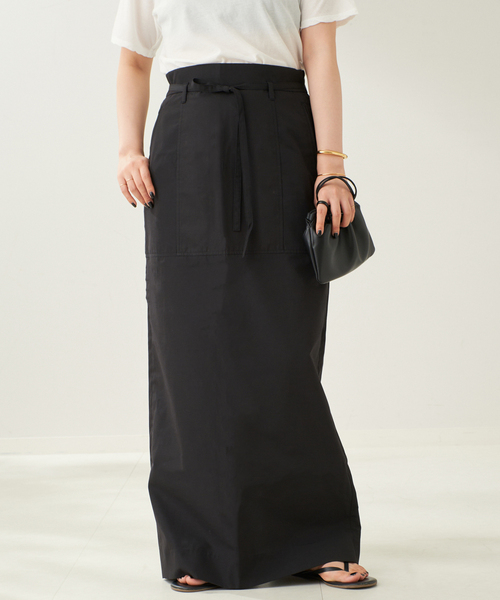 シンプルなトップスと合わせて着映えるスカート。 ウエストに華奢な紐を付けて、スタイリングにさりげないポイントをプラス。 さらりとドライなタッチで、真夏でも快適に穿きやすいのが魅力です。 Tシャツを合わせたカジュアルスタイルにも品よく馴染むアイテムです。 ********************** 透け感:なし 裏地:なし 伸縮性:なし 光沢感:なし 生地の厚さ:普通 ********************** ※取り扱いについては、商品についている品質表示でご確認ください。 ※ 店頭及び屋内外での撮影画像は、光の当たり具合で色味が違って見える場合があります。 商品の色味は、商品アップ画像をご参照ください。 また、お客様のお使いのPCのモニター環境などにより色味が違って見える場合があります。 予めご了承の上ご注文ください。 本体:手洗い可能